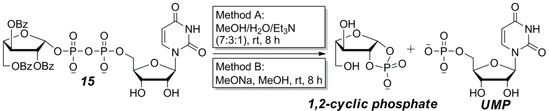 2.2. The Attempt to Synthesize UDP-l-Araf (16) from Benzoyl-Protected l-Arabinofuranosyl-1-Phosphate (13)