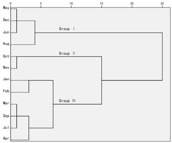 Simply, the 12 samples are clustered into three groups (I, II, and III), where group I is composed of four samples, II contains two, and group III includes six different months. May, December, June, August belonged to group I for their similar weak activities and effective constituents, October and November formed group II, and the other times of the year were classified as III, which was moderate in terms of active ingredients, antioxidants and inhibitors of enzyme. Within the squared Euclidean distance of 5, samples were then sorted into four classes, where January and February were distinct from March, July, September and April. In total, the six months of the last group showed no difference. In terms of the quantitation and efficacy trial, the collection time in group II, which contained beverage materials from October and November, may be preferable in terms of the harvest months.
