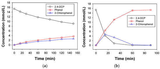 - Shao, Y.; Xu, Z.Y.; Wan, H.Q.; Wan, Y.Q.; Chen, H.; Zhen, S.R.; Zhu, D.Q. Enhanced liquid phase catalytic hydrodechlorination of 2, 4-dichlorophenol over mesoporous carbon supported Pd catalysts. Catal. Commun. 2011, 12, 1405–1409. [Google Scholar] [CrossRef]