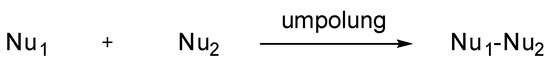 - Seebach, D. Methods of Reactivity Umpolung. Angew. Chem. Int. Ed. 1979, 18, 239–258. [Google Scholar] [CrossRef]