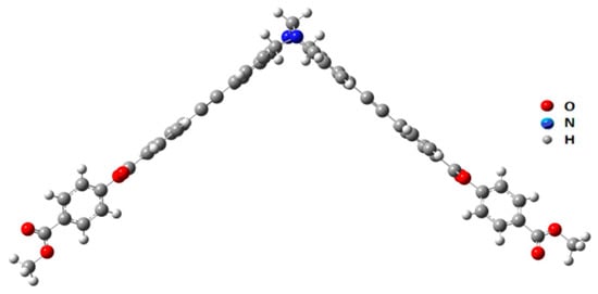 In summary, we have designed and synthesized a novel banana-shaped molecule based on Tröger’s base via double Sonogashira cross-coupling reaction. The chemical structures have been characterized by 1H-NMR, 13C-NMR, Fourier transform infrared (FT-IR) spectroscopy and mass spectrometry. Theoretical study was also conducted by Gaussian 09 program, and we confirmed that the molecule has a bent-core structure. In the future, we will use this method to obtain a series of these bent-core compounds. Further studies on its applications in the photology are currently in progress.