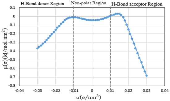 The sigma potential ( rely on composition, temperature (T), sigma profile and electrostatic interaction energies (, which is determined by Equation (3):