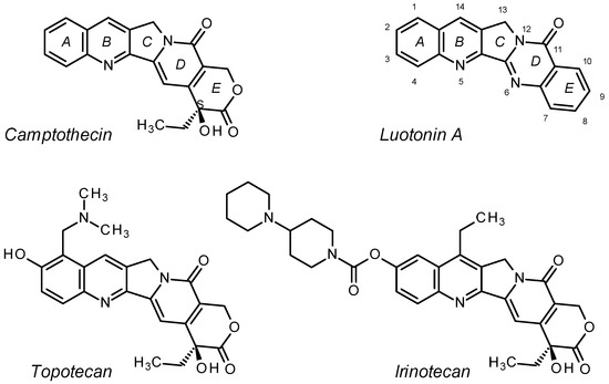 - Pizzolato, J.F.; Saltz, L.B. The camptothecins. Lancet 2003, 361, 2235–2242. [Google Scholar] [CrossRef]