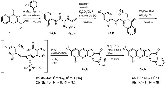 - Atia, M.; Bogdan, D.; Brugger, M.; Haider, N.; Matyus, P. Remarkable regioselectivities in the course of the synthesis of two new Luotonin A derivatives. Tetrahedron 2017, 73, 3231–3239. [Google Scholar] [CrossRef]
