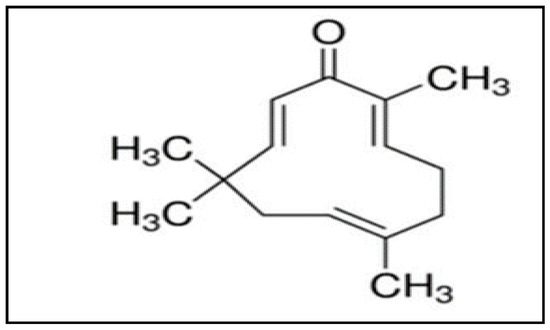Cancer is a serious health problem globally and is the second leading cause of death [1,2,3,4,5]. The risk factors for cancer mortality may be due to behavioural and environmental factors such diet, exposure to air pollution, use of addictive substances, lack of physical activity, etc. [6]. The recent targeted therapies for cancer are associated with non-specific toxicities, exhibit limited efficacy, and are expensive to use [7]. Also, one of the major drawbacks of anti-cancer drugs has been the lack of selectivity, and thus they can exert adverse effects on the healthy tissues and organs [8]. Furthermore, conventional chemotherapeutics are also associated with the development of chemoresistance [9,10,11,12]. Overall, most cancer treatment strategies are associated with side effects, lack of selectivity, toxicity, and development of chemoresistance, leading to high mortality and poor prognosis [7,8,9,10,11,12,13]. Herbs, vegetables, fruits, spices, cereals, pulses, and nuts have been shown to produce a large number of phytochemicals that exert chemopreventive and therapeutic properties against various human ailments [14,15,16,17,18,19,20,21,22,23,24,25,26,27,28,29]. Since ancient times, plants and plant-based compounds have been extensively used in tribal and folklore medicine due to their beneficial pharmacological properties and fewer side effects [20,30,31,32]. One such plant-derived compound is zerumbone (Figure 1), extracted from the traditional plant Zingiber zerumbet Smith, which is also known as bitter ginger, shampoo ginger, and pinecone ginger [33,34,35,36,37,38].
