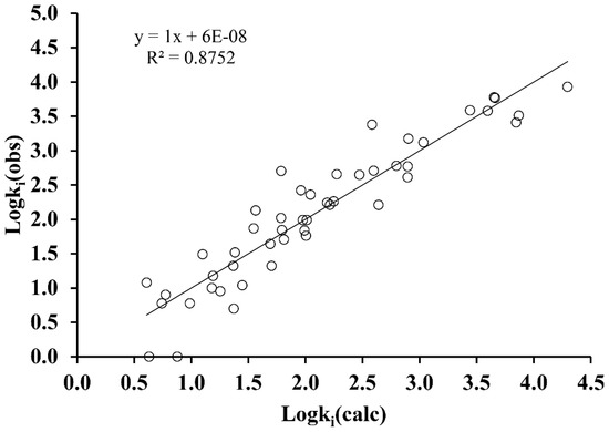 Graphical representation of Logki (obs) versus Logki (calc) obtained from Equation (2).