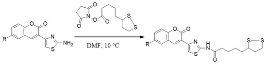 3.1.6. General Synthesis of 6-substituted-5-[1,2]-dithiolan-3-yl-pentanoic acid [4-(2-oxo-2H-chromen-3-yl)-thiazol-2-yl]-amides 5a–c