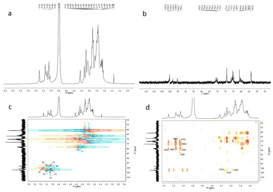 | C | α-d-Glcp-(1→ | 98.3 5.07 | 70.4 3.80 | 73.3 3.85 | 76.7 4.08 | 70.1 3.90 | 61.0 3.81, 3.75 |