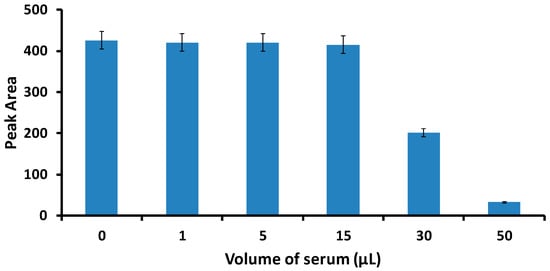 Effect of the spiked serum volume on the response of the LFA. The concentration of thrombin is 25 nM. Other experimental conditions were the same as that described in Figure 4.