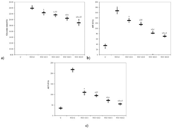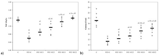 | STZ and liposomal-curcumin (1 mg/100 g bw) solution pre-treatment (STZ + lCC1) | 1 mL i.p. STZ * 1 mL i.p. Liposomal-curcumin, 1 mg/100 g bw |