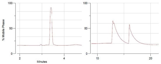 Chiral-HPLC separation of compound 1 (pure enantiomer—left) and compound 3 (diasteromeric mixture—right).