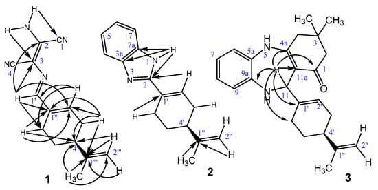 HMBC correlations of compound 1–3.