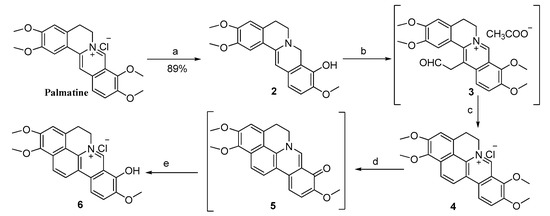 3.2.1. Synthesis of 1,2-Dimethoxy-8-hydroxy-9-methoxycycloberberine Chloride (6)