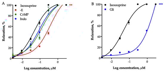 4.2.4. Participation of Endothelium, the CO/cGMP and the PGI2/cAMP Pathways, Potassium Channels and β2 Adrenoceptors in the Vasodilator Effect of Isoxsuprine