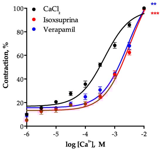 | Isoxsuprine | 0.0461 ± 0.004 | 0.3846 ± 0.040 *** | 0.3255 ± 0.026 *** |