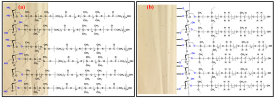 Schematic representation of (a) sol-gel PCAP-PDMS-PCAP; (b) sol-gel PEG-PPG-PEG coated FPSE media.