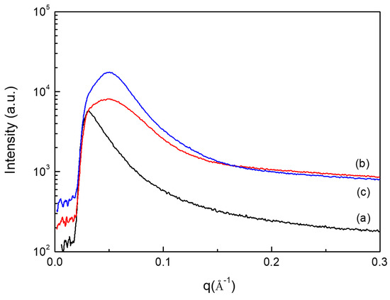 SAXS profiles of (a) BD–PU, (b) ISB–PU, and (c) IMN–PU.