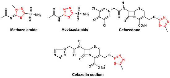 - Li, Y.; Geng, J.; Liu, Y.; Yu, S.; Zhao, G. Thiadiazole—A Promising Structure in Medicinal Chemistry. Chem. Med. Chem. 2013, 8, 27–41. [Google Scholar] [CrossRef]
