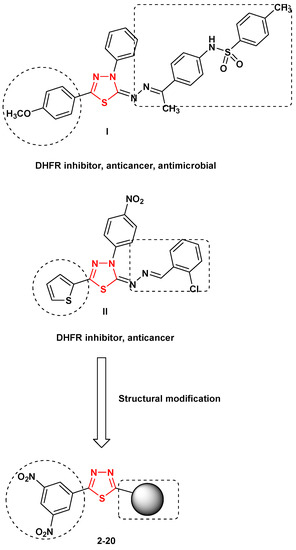 - Riyadh, S.M.; El-Motairi, S.A.; Ahmed, H.E.A.; Khalil, K.D.; Habibe, E.E. Synthesis, biological evaluation, and molecular docking of novel thiazoles and [1,3,4]thiadiazoles incorporating sulfonamide group as DHFR Inhibitors. Chem. Biodivers. 2018, 15. [Google Scholar] [CrossRef]
