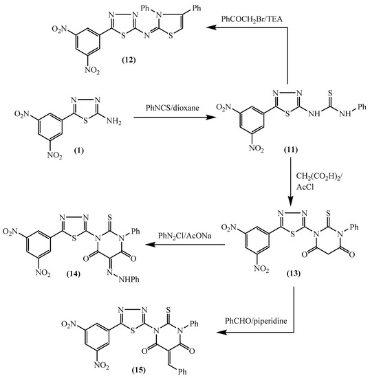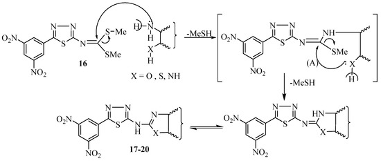 3.1.15. Synthesis of N-[5-(3,5-dinitrophenyl)-1,3,4-thiadiazol-2-yl]benzo[d]azole derivatives 17–19
