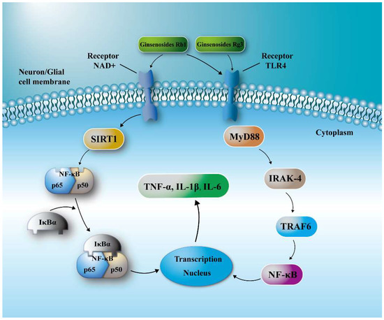 - Zhu, J.; Jiang, Y.; Wu, L.; Lu, T.; Xu, G.; Liu, X. Suppression of local inflammation contributes to the neuroprotective effect of ginsenoside Rb1 in rats with cerebral ischemia. Neuroscience 2012, 202, 342–351. [Google Scholar] [CrossRef]