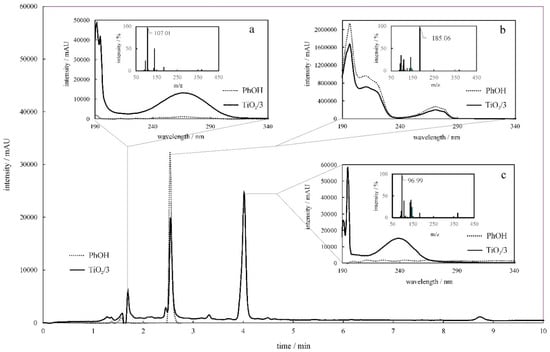 2.5. UV–Vis Absorbance Spectra of the Photodegradation Products