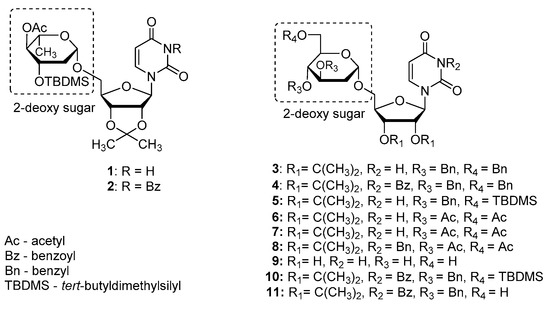 The structures of uridine derivatives of 2-deoxy sugars used in the study: 1–11.
