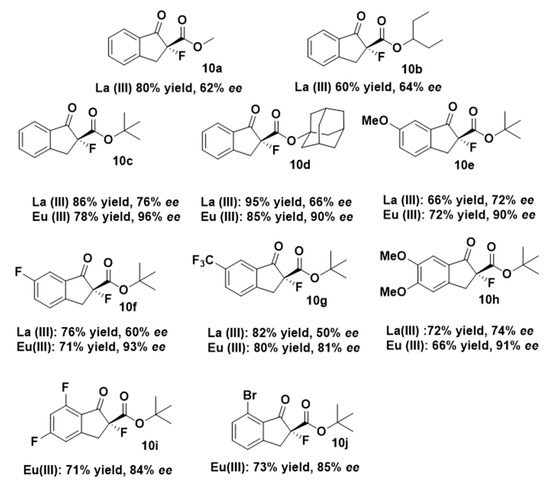 Catalytic Asymmetric Fluorination of Alkyl 1-indanone-2-carboxylates Ruled by Pybox-Eu(III) Combination