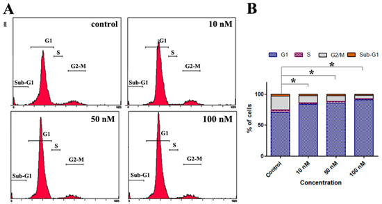 For the cytotoxicity assay, the cells grown in the logarithmic phase were seeded into 96-well plates (5 × 103 cells/well) for 24 h, and then exposed to different concentrations of the test compounds for 48 h. After the attached cells had been incubated with 5 mg/mL MTT (Sigma, St. Louis, MO, USA) for another 4 h, the suspension was discarded and subsequently the dark blue crystals (formazan) were solubilized in dimethyl sulfoxide (DMSO). Then, the absorbance was measured at 570 nm using a multifunction microplate reader (Molecular Devices, Flex Station 3) (Thermo Fisher Scientific, San Jose, CA, USA), and each experiment was performed at least in triplicate. The cytotoxic effects of each compound were expressed as the IC50 values, which represents the drug concentration required to cause 50% tumor cell growth inhibition. This was calculated with GraphPad Prism Software version 5.02 (GraphPad Inc., La Jolla, CA, USA).
