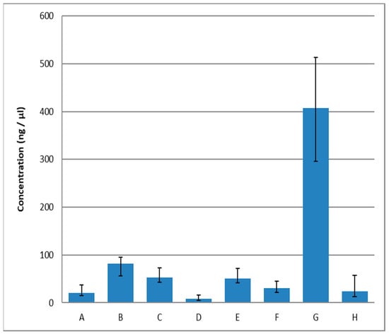- Di Pinto, A.; Forte, V.T.; Guastadisegni, M.C.; Martino, C.; Schena, F.P.; Tantillo, G.A. Comparison of DNA extraction methods for food analysis. Food Control 2017, 18, 76–80. [Google Scholar] [CrossRef]