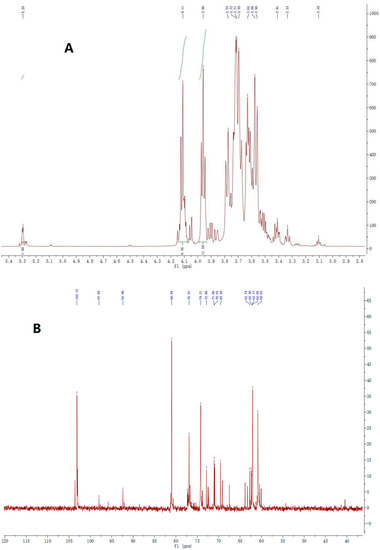 The1H-NMR (A) and 13C-NMR (B) spectrum of PGF.