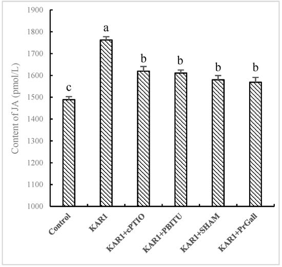 2.3. JA Acted as a Downstream Signal of NO Pathway Induced by KAR1