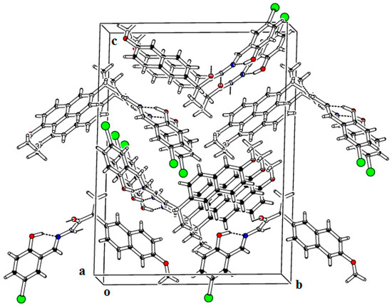 The packing diagram of the Schiff base (5) showing the infinite one-dimensional chains along the a-axis.