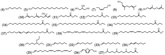 The alcohols, esters, ethers, aldehydes, and ketones from A. cathartica.