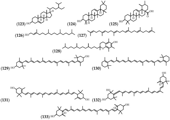 Only these groups of chemical compounds have been isolated and identified, and no anthraquinones, anthocyanins, coumarin, quinones, or lignins have been found. The Marvin program was used to draw the structures of organic chemical compounds [55].