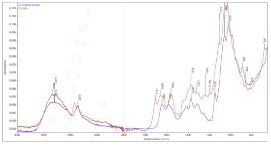 FTIR spectra of CS original powder and CS NP before incubating in 0.2 mg/mL lysozyme solution.