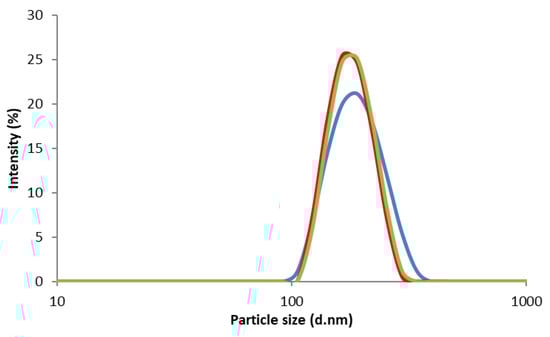 3.2.2. Particle Size and Size Distribution of CS NPs