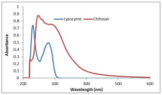 UV-VIS spectra of CS solution (1.0% w/v) in acetic acid (1% v/v) and lysozyme solution (0.2 mg/mL) in PBS (pH 7.4).