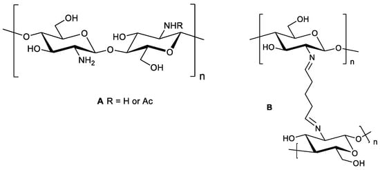 (A) Chitosan. (B) Chitosan chemically crosslinked with glutaraldehyde.