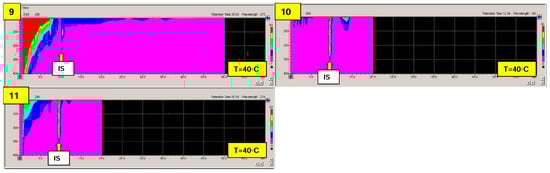 To illustrate and compare the efficiency of bisphenols interaction with macrocyclic additives the ratio k0mMCD/k10mMCD for each temperature point was calculated (Table 3). As it was observed for different classes of low-molecular mass compounds, a strong interaction with macrocyclic additives at low temperatures is more significant [,]. A decrease in the retention time of analytes at a subambient temperature is particularly visible for bisphenol B (5) and Z (11) in the case of native cyclodextrin as well as for A (4), B (5), and Z (11) in case of a hydroxypropyl derivative. Such results suggest preferable interactions of cyclodextrins with bisphenols containing n-alkanes chains or saturated rings (cyclohexane). This observation could be useful for designing an selective chromatographic system for bisphenols analysis as well as the removal of such molecules from the liquid phase based on host-guest interaction.