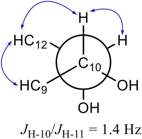 - Matsumori, N.; Kaneno, D.; Murata, M.; Nakamura, H.; Tachibana, K. Stereochemical determination of acyclic structures based on carbon-proton spin-coupling constants. A method of configuration analysis for natural products. J. Org. Chem. 1999, 64, 866–876. [Google Scholar] [CrossRef]