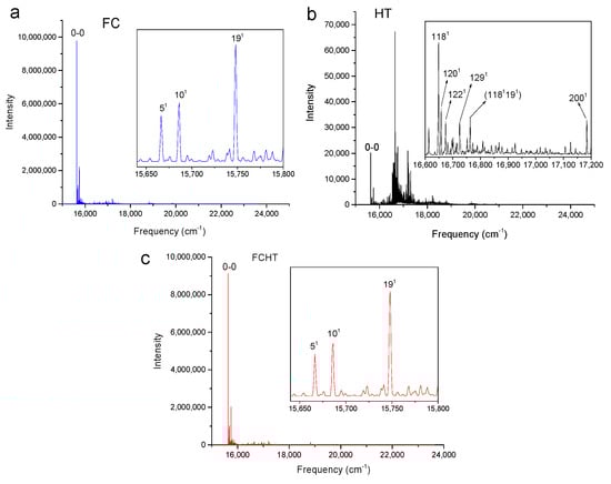 To compute the FC spectrum for strongly allowed transitions, only the zero-order term is taken into account, while the first-order HT terms of the equation must also be considered when computing the FCHT spectrum for weakly-allowed or forbidden transitions [,].