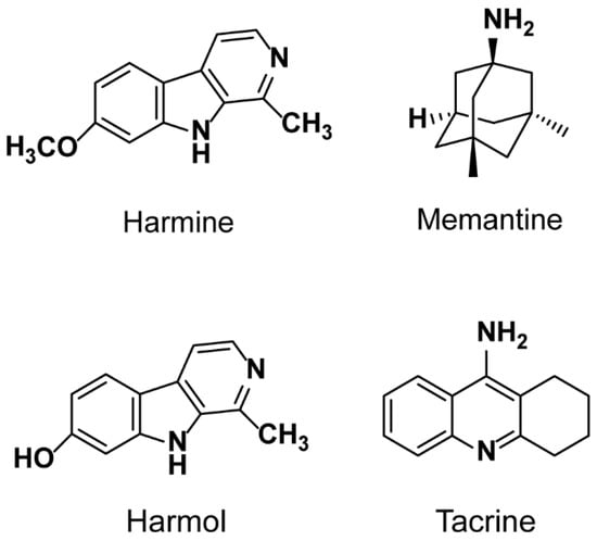 Sample Availability: Samples of the compounds harmine, memantine, harmol and tacrine are available from the authors. |