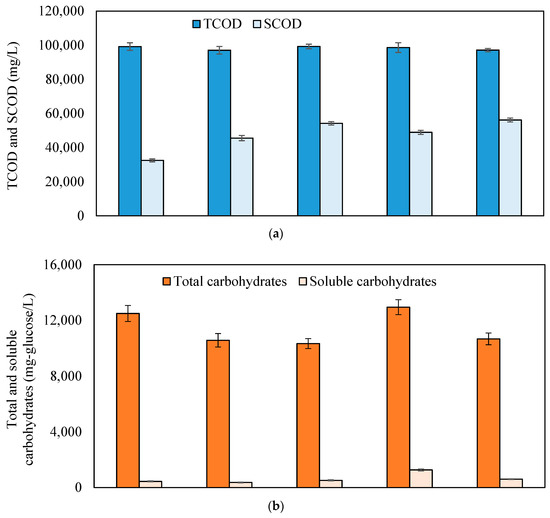 The degree of solubilization of carbohydrate, protein, and COD were calculated to assess the hydrolysis efficiency (Equation (1)):