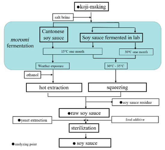 - Luh, B.S. Industrial production of soy sauce. J. Ind. Microbiol. 1995, 14, 467–471. [Google Scholar] [CrossRef]