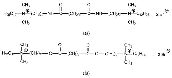 Sample Availability: Samples of a(s) and e(s) series of gemini surfactants are available from the authors. |