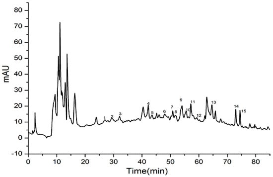 2.4. Identification of Major Phenolic Acids from the Vinasse Extract
