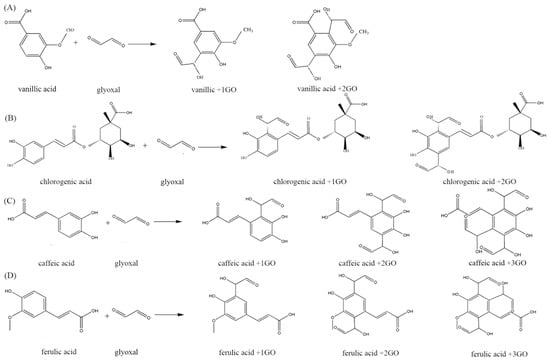 2.5. The Trapping of Glyoxal (GO) by the Major Phenolic Acids Extracted from Vinasse