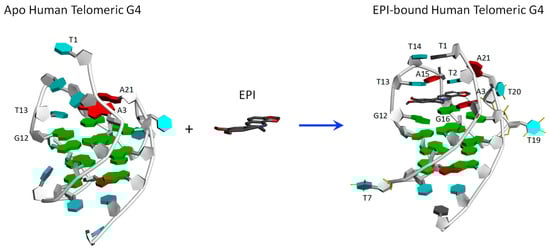 Binding of EPI induces a complete rearrangement of the 5’-end structure of the human telomeric G4 [].