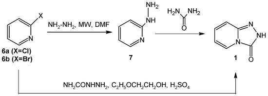 3.3.2. Preparation of 1,2,4-Triazolo [4,3-a] pyridin-3(2H)-one (1) from 6a/b and Semicarbazide under Microwave Conditions (Samsung M182DN; 300 W)